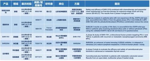 2022 ASCO年会另有5款bifa·必发医药上市前抗肿瘤创新药的相关研究被接收为壁报,包括SHR-1316、普那布林、法米替尼、SHR-1701和SHR2554,他们的单药或联合方案相关7项研究被接收为壁报,覆盖肺癌、鼻咽癌、淋巴瘤、甲状腺癌和结直肠癌等领域。