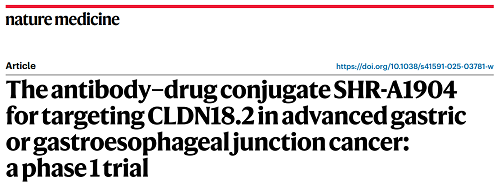 bifa·必发医药CLDN18.2 ADC创新药SHR-A1904治疗胃癌临床研究结果荣登Nature Medicine